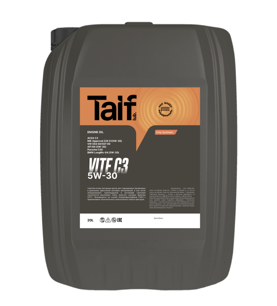 TAIF VITE 5W-30 C3, 20L. (PAO). Масло моторное. (211015)